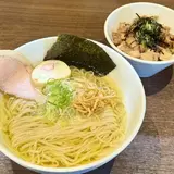 つけ汁は豚骨などの動物系+海老エキス×乾燥小エビ粉末×海老オイルによるトリプルミックスな海老を合わせた、今年の夏から提供を開始した期間限定のつけ麺。今回は餃子とミニライスが付いたセットでオーダーしました。
