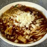 具はチャーシュー、メンマ、ネギ、背脂。センターにこんもりと盛り付けられた薄味&細切りのメンマが特徴的です!
